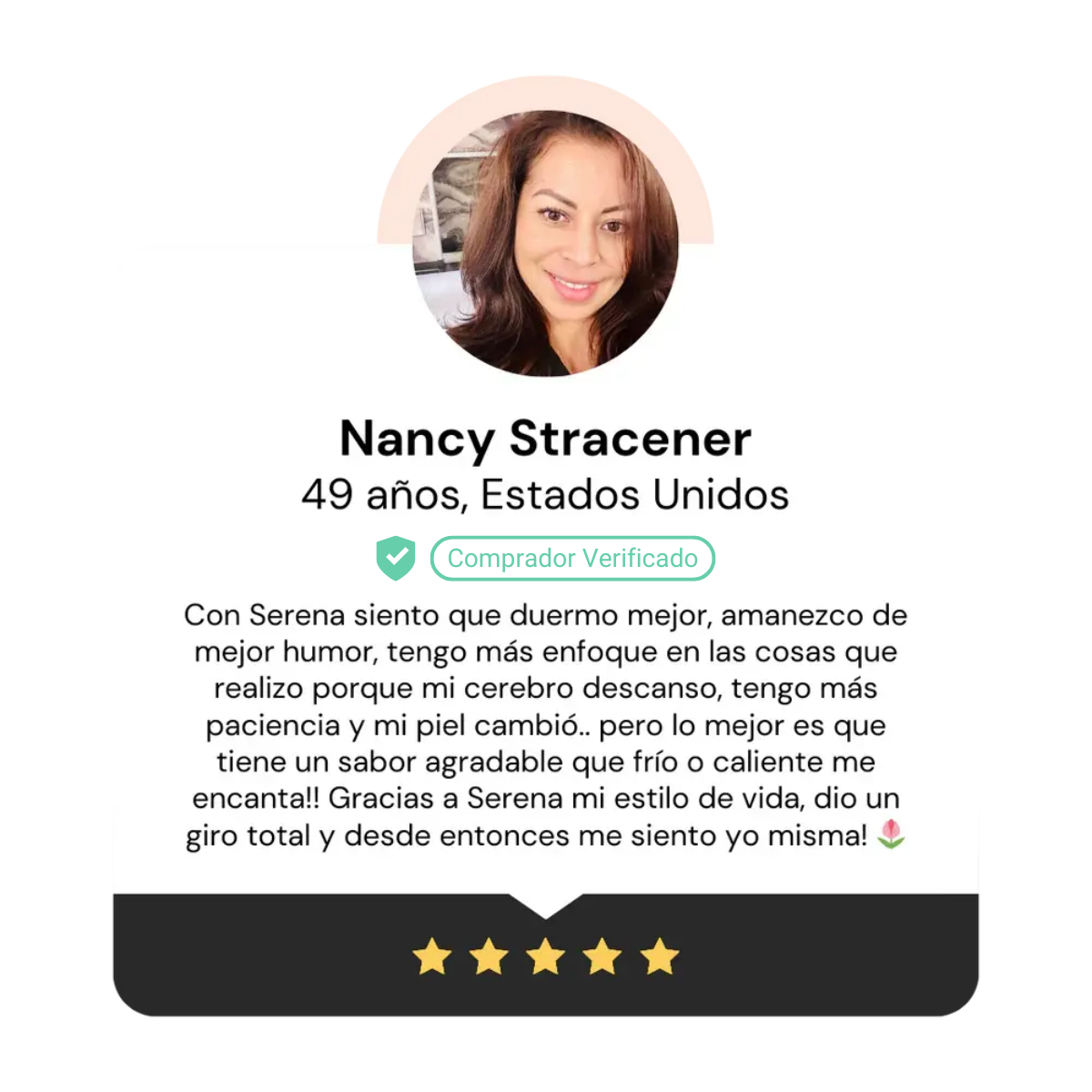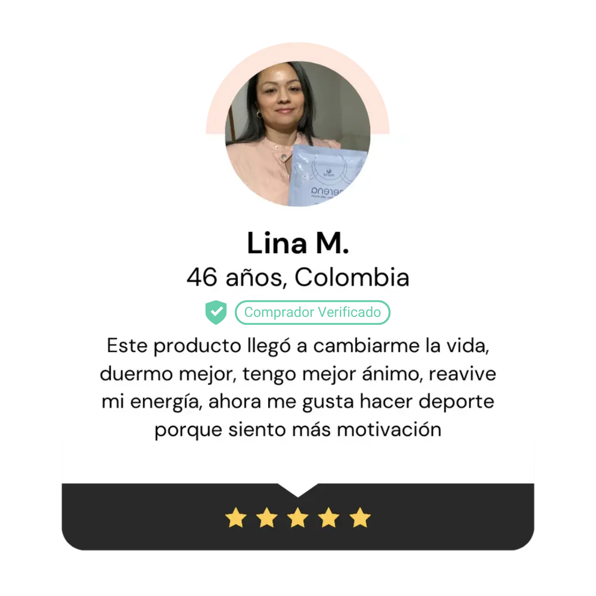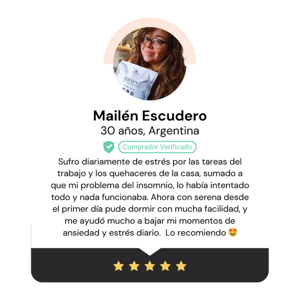 LauraExcelente producto desde que lo he usado he podido dormir sin despertar en las noches duermo como un bebé lo recomiendo tenía mucho tiempo que no había descansado de esa manera es increíble mi día lo tengo lleno de energía sin estrés puedo tener muchos problemas pero los problemas ya no me quitan mi sueño gracias